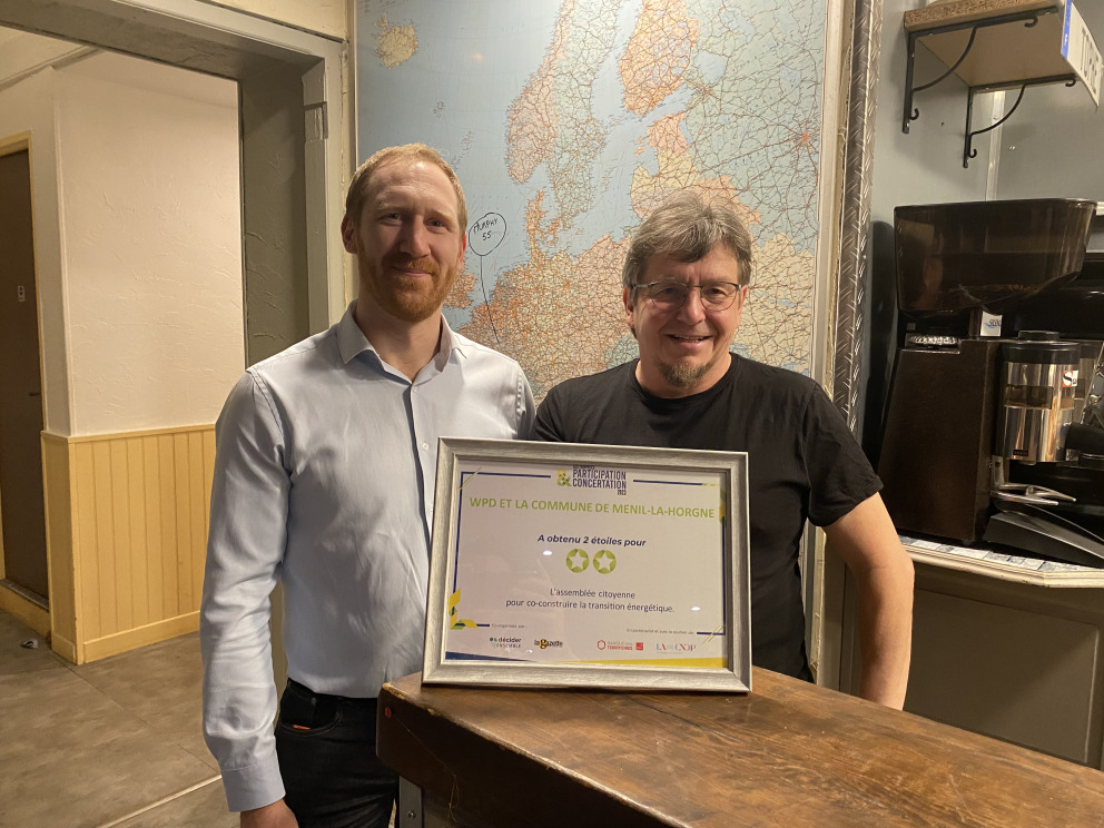 La commune de Ménil-la-Horgne et wpd obtiennent 2 étoiles au Trophée de la Participation et de la Concertation en 2023.